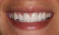 However, Dr. D'Amico was in total agreement with being conservative especially considering how young the patient was at the time. The three pictures show the progression from Pre-treatment to Post-Gum modification to Final Smile on the day her four (4) front Veneers were delivered. The patient's gums were slightly inflamed in the final picture since it was the day the Veneers were bonded into place.
